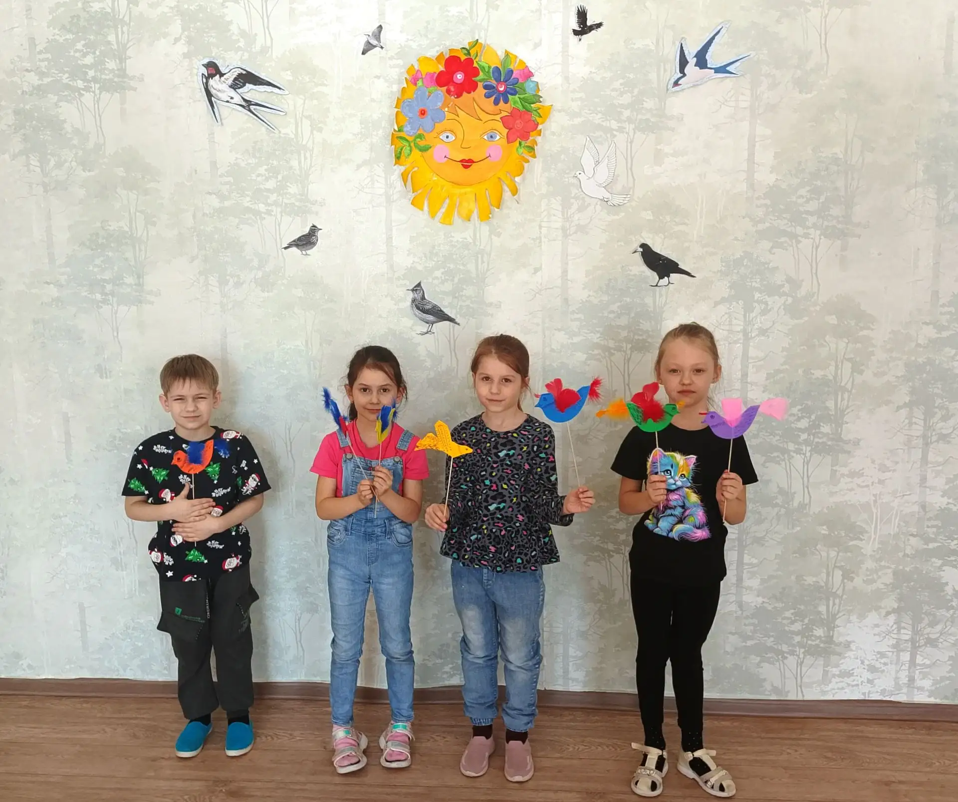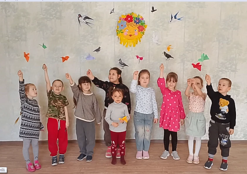 Педагог дополнительного образования Тумаева Т.И. рассказала ребятам о Дне весеннего равноденствия, о христианском празднике "сОроки", о его традициях и обрядах. Ребята узнали о певчей птичке жаворонок, которая возвращается в родные края, прослушали запись пения жаворонка. Они изготовили ярких птичек из бумаги, фоамирана, окрашенных перышков. Под музыку Глинки танцевали и веселились. Выучили маленькое стихотворение (группа "Фантазёры") и праздничную закличку.